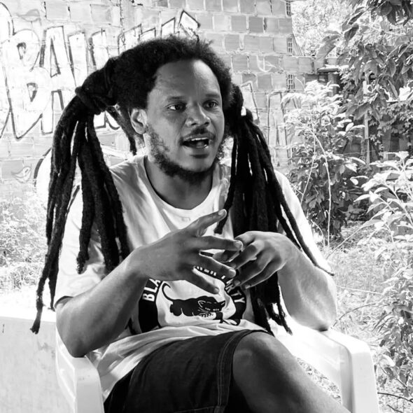 A expressão conhecida na Bahia: “Né de boca não”, certamente poderia ter uma foto de Aganju como o desenho representativo de sua verdade. As cinco possíveis rajadas que partem das cinco cabeças do Tiamath são constantemente desferidas pelo artista na conjuntura e na potência disruptiva de sua obra. Seja ela comunitária, teórica, artística ou profissional, estamos sempre diante de uma figura que não joga o jogo da branquitude, se mantendo no limiar mínimo de distribuição das plataformas de internet.