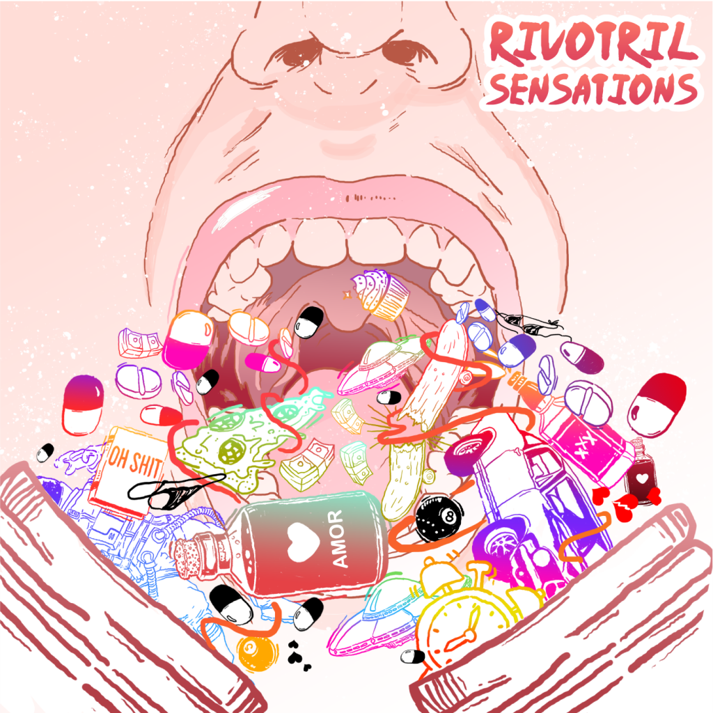 Se tomarmos o próprio título do Ep, já poderíamos ir num bom caminho para enterdermos melhor o que aqui quero explicar. Um das potências da música do Bikini Hunters é exatamente o humor caústico, e trazer um EP nomeado como Rivotril Sensations (2019), é prova disso.