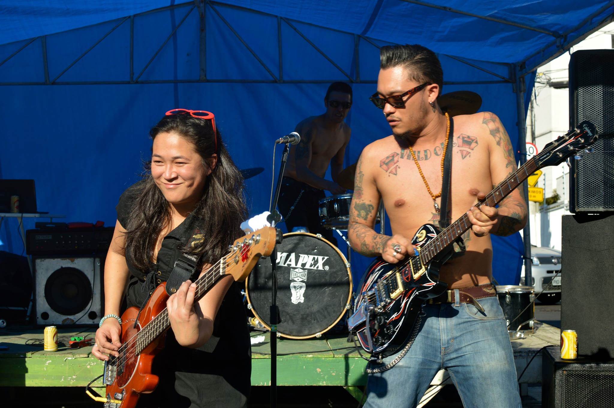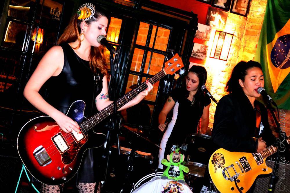 DM: Como é a recepção do público quando te vêem como única integrante feminina na sua banda “Los Clandestinos” e na nossa integrada só por garotas “Time Bomb Girls”. Você vê diferença quando se tem homens na banda? Conta pra gente!