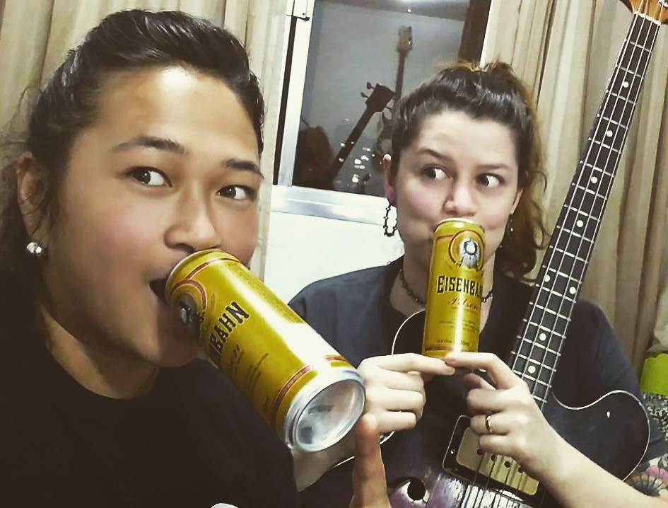 SY: Comecei a trabalhar na loja de construção dos meus pais com 13 anos, isso me ajudou a começar a aprender sobre o que eu queria, a dar valor nas pequenas coisas. Juntando dinheiro comprei meu violão, pois tinha pedido pra minha mãe e ela não achou apropriado dar um instrumento a uma menina. Acho que tive que passar por muitas coisas para sentir essa vontade de tocar. Quando me tornei mãe, achei que nunca mais iria tocar. Com o lance da amamentação e cuidados com bebê, deixei de ensaiar, estava em um relacionamento bosta no qual me puxava muito pra baixo. Pensei que não ia mais poder tocar. Fiquei me sentindo vazia, sem expectativa e sem luz própria. Daí, quando terminei definitivamente aquele relacionamento péssimo, tudo começou a melhorar, tanto no meio musical quanto no pessoal. Quando a Laurinha fez 4 anos retomei meus projetos musicais a todo vapor. Tocando com Clandestinos conheci a Lili, e não nos largamos mais. Ela é uma pessoa incrível que me completa e ajuda a ter o equilíbrio que sempre busquei. Nos amamos e hoje sinto a diferença em minha vida pelas pessoas que me rodeiam, como minha vida tomou um curso em que me faz feliz.