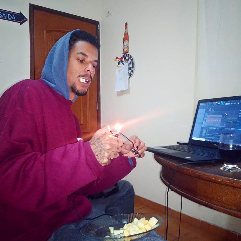 Os instrumentais do disco casam bem com cada conteúdo abordado, criando uma ambientação que encaixa com o timbre grave do MC e trazem uma atmosfera, como no caso de Dia no Dentista em que as batidas ecoam e criam essa sensação de incômodo e suspense que o conteúdo da letra pede. Outros beats que me agradaram bastante foram o da faixa 11, Intropatia, com participação da Nabru, por causa do sample de Topázio do Djavan, do disco Meu Lado, um dos meus discos preferidos, e da faixa Contra Fluxo, com um sample, ou synth (não identifiquei), cujas notas se esticam de forma lenta pelo beat em contraponto à batida e o flow acelerado do MC . Foi o que eu disse acima sobre a identificação não planejada e os detalhes aparentemente simples que importam muito.