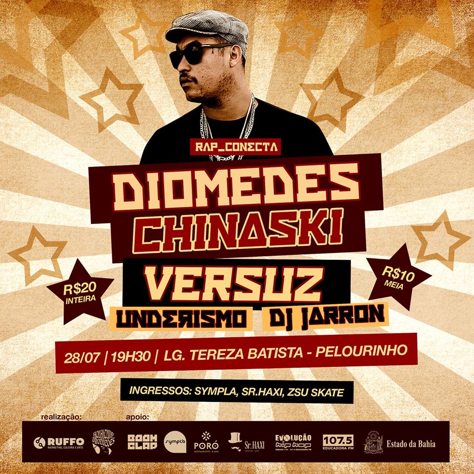 Diomedes Chinaski chega com a turnê de Comunista Rico em Salvador. Uma line que conta ainda com DJ Jarrão, Underismo e a Versu2: RAP CONECTA