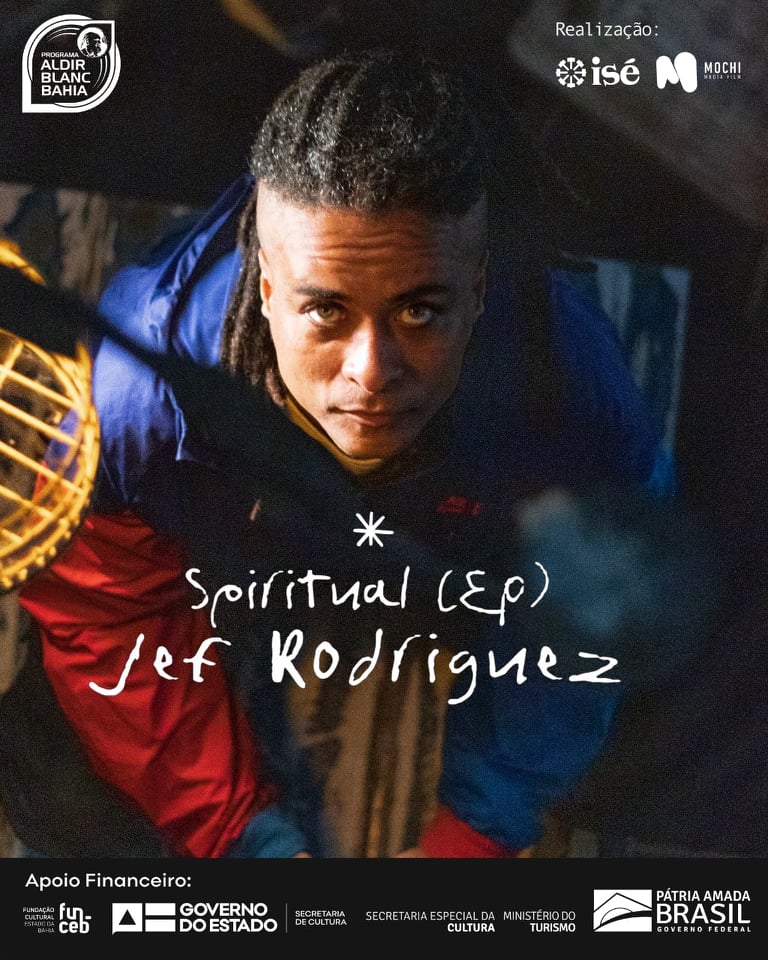 Certamente, a vida continua bela e cada vez mais punk e receber um trabalho de estreia de um jovem veterano é um sopro de vida no meio desse caos. Jef Rodriguez (OQuadro) lançou na última segunda-feira (30), seu EP de estréia Spiritual (2021), contando com a participação de nomes locais (BA) e de um niteroiense (RJ), além da produção luxuosa do produtor RDD. Como o título do EP nos sugere, os pouco mais de 16 minutos do trabalho propõem estados de espírito diversos e esses afetos são muito bem trabalhados pela consciência artística de Jef.