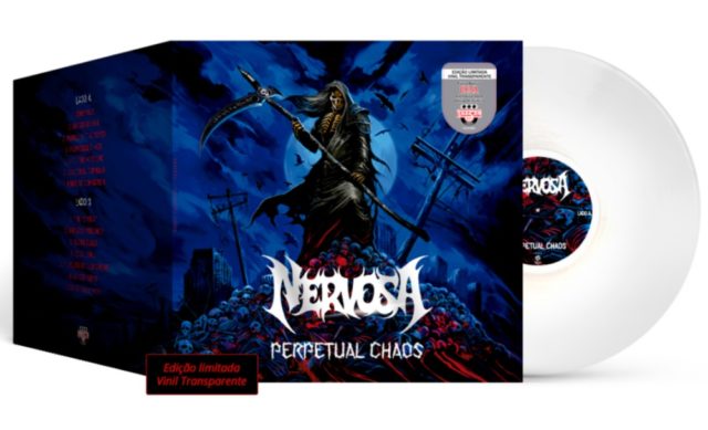 O primeiro álbum da nova formação da Nervosa, uma das bandas mais representativas do Metal nacional na atualidade, chega ao Brasil em LP. “Perpetual Chaos”, lançado originalmente em janeiro deste ano, ganhou duas edições em vinil: uma limitada, na cor transparente, com capa dupla e logo metalizado, e a outra em vinil preto, capa dupla e logo semitransparente. As duas opções contam com a faixa bônus “Exija”, única em português, lançada exclusivamente na edição brasileira.