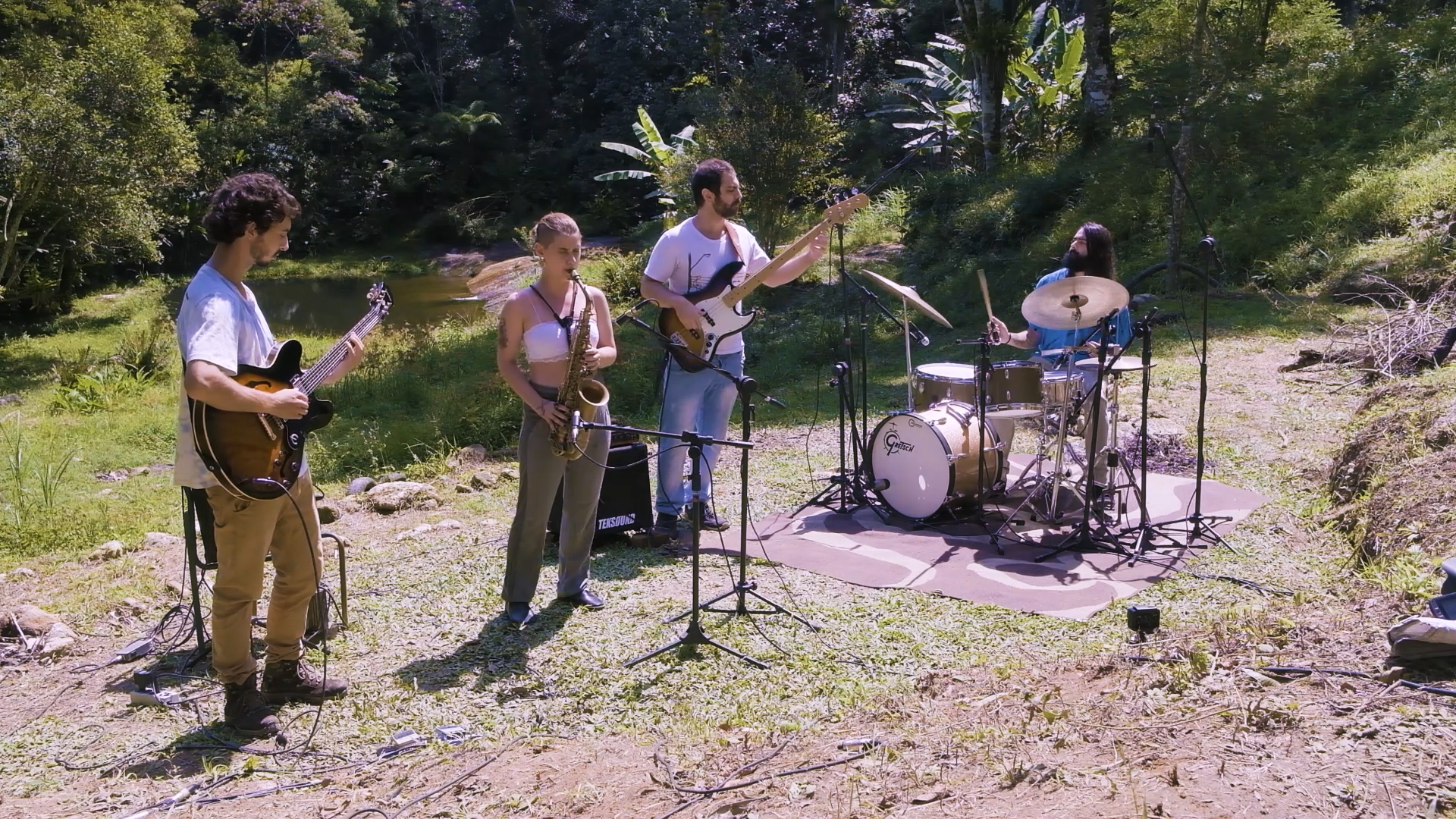 Foi fazendo valer as palavras do alquimista do Graujauex, que projetos coesos como o EP audiovisual da Mariana Oliveira Quarteto, foram possíveis. “Sonhando em Quarentena“, lançado no dia 13 de maio de 2021, com exclusividade aqui no Oganpazan – via Lei Aldir Blanc – é um registro que acopla as composições do quarteto formado por Mariana Oliveira (saxofone), Ará Kedikian (baixo), Renato Pestana (bateria) e Emanuel Hilgenberg (guitarra), à um excelente trabalho audiovisual, feito com muita sensibilidade, inteligência na edição e approach documental – pela produtora Orsu Filmes, com direção de Adriano Caron e assistência de Pedro Macimo.