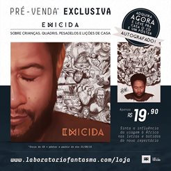 Emicida batizou o novo álbum de Sobre Crianças, Quadris, Pesadelos e Lições de Casa. O título deixa claro ser um álbum sobre nossa ancestralidade africana e todos os desdobramentos sociais, culturais, e políticos desencadeados pelo tráfico de escravos em terras brasileiras. E pelo que vimos até aqui o dedo foi enterrado fundo na ferida! Emicida foi à África dar um rolé para fazer este álbum e ter a vivência da pele sobre a realidade do continente africano. Pelo visto esse encontro com suas (nossas) origens deu força e um novo olhar do músico sobre nossa herança negra! O lançamento oficial em plataformas de streaming será no dia 7 de agosto, próxima sexta feira. Para os interessados no álbum físico basta fazer o pedido no site do Laboratório Fantasma, onde o álbum já está disponível na pré venda. Pra quem optar por comprar o álbum em pré lançamento além de pagar R$ 19,90 ganha um pôster exclusivo e autografado pelo Emicida.