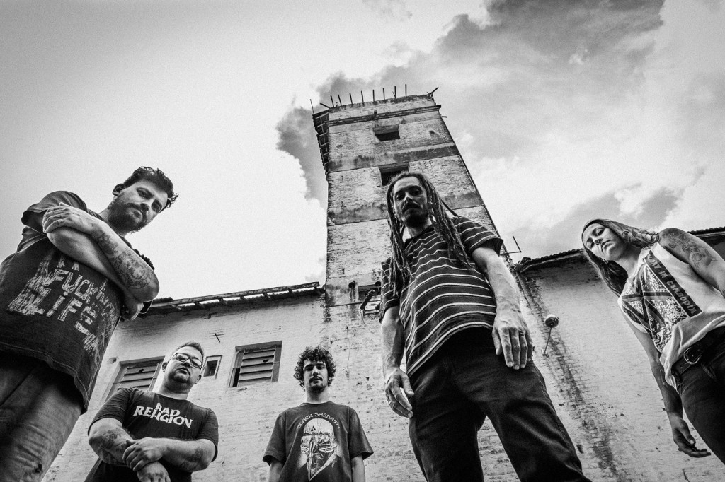 Leonardo (Derrota): Alguém sempre traz uma ideia de riff ou melodia e apresenta para os outros da banda, que vão criando em cima dessa ideia principal… No caso desse disco, eu trouxe quase todas as ideias iniciais e mostrei primeiro para o Jesse ou para a Nathalia, que já criavam uma linha mais melódica, depois apresentávamos para o Eduardo e para o Marcel (baixo e bateria respectivamente), para finalizarmos a juntos.