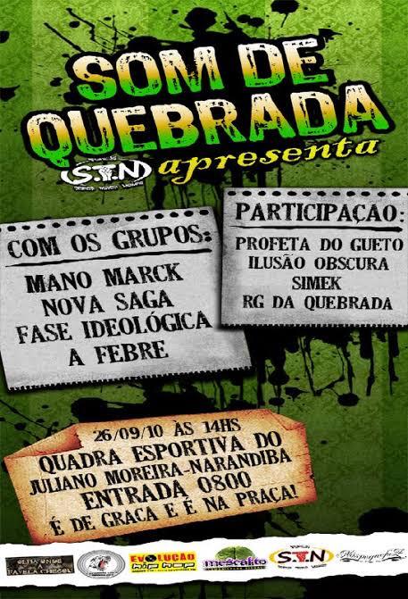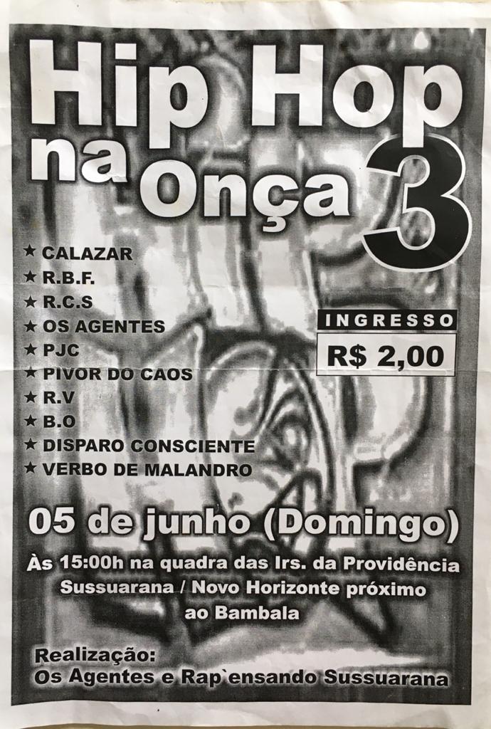 Época em que surgiram diversos núcleos de Hip Hop (Posses) por toda a cidade e por consequência a realização de incontáveis eventos de quebrada, como bem lembra o rapper e professor Lázaro Erê, do grupo Opanijé a Wall Cardoso no 2º episódio do podcast Reg de Rap.
