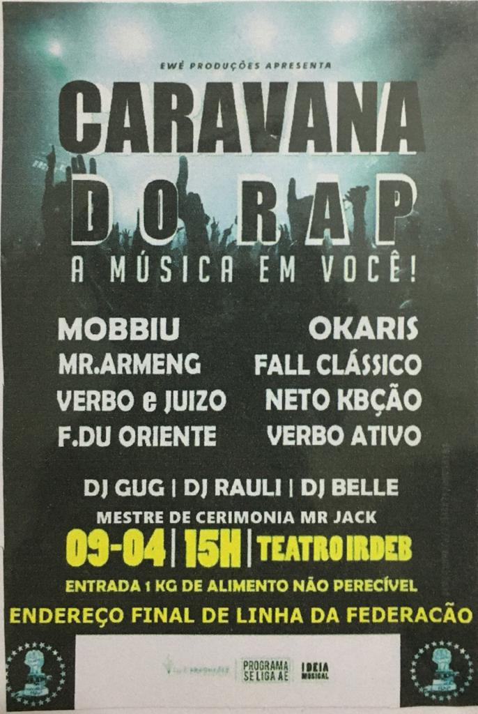 O Caravana do Rap, e que aqui se difere dos demais com uma característica incomum. Diferente dos demais eventos e como o próprio nome já sugere, A Caravana do Rap é um evento que não tem um “endereço fixo”. Pois, com a sua proposta itinerante de levar a cultura Hip Hop e seus elementos a diversas quebradas da cidade, o evento teve diversas edições em vários bairros de Salvador e também no centros.