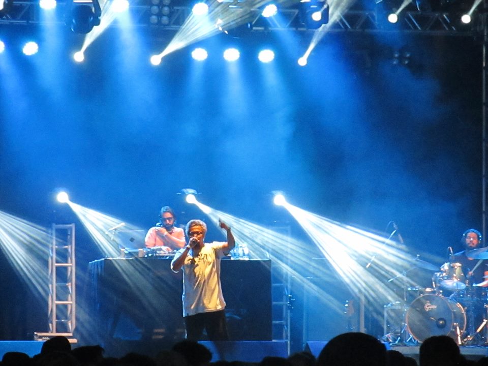 Chegamos no Centro Cultural Oscar Niemeyer por volta de 23h. Olhamos os cartazes e se tratava do Goiânia Noise em sua 22ª edição. Estava no palco Black Alien. Nunca tinha ido ao show do cara. Fiquei boquiaberta a maior parte do tempo. Versos animais, politicamente engajados, ritmicamente dançantes.. ninguém ficou parado. O que mais me surpreendeu nesse show foi a presença de uma tradutora de libras que traduzia todas as letras simultaneamente.